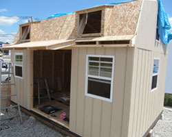 内部風景と内部の屋根の骨組み部分です。屋根の部分を被せます。窓が必要な場合、パネル部分を開口し、取り付けます。※窓はキットに含まれません。 |