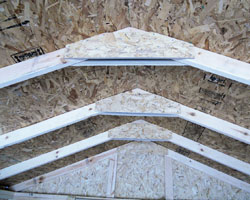 土台が設置できましたら、壁の部分を組み立て、屋根の骨組み部分を組み立てます。 材料は塗装されていませんが、下塗りが施されています。 |